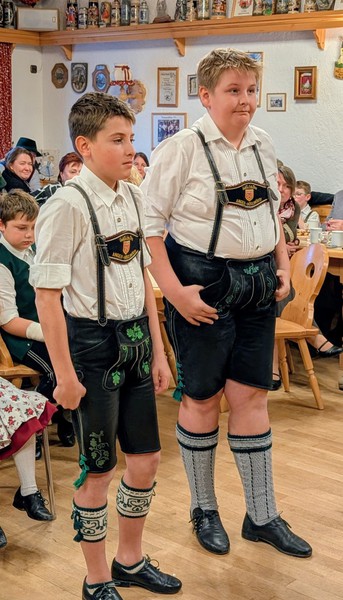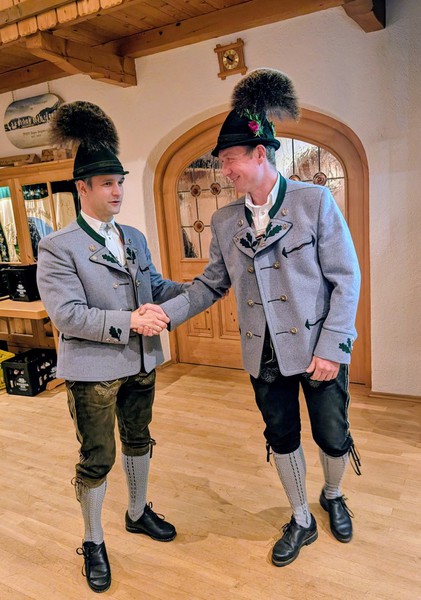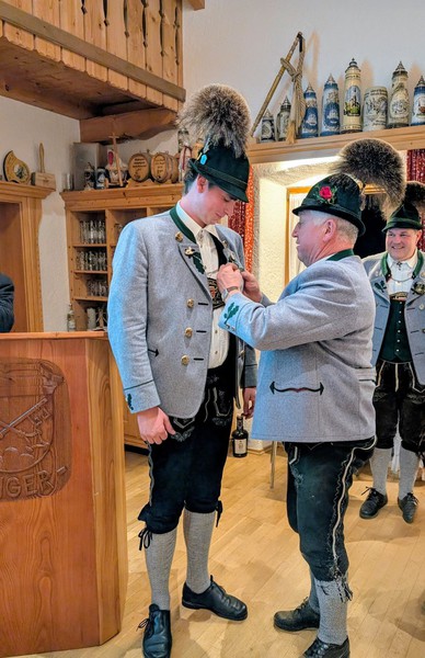 Trachtenruhestand. Sepp, war selba zwoa Jahr Vorplattler, drei Jahr erster Fähnrich, 16 Jahre Jugendleiter und seit 2003 wechselnd zwoada und dritter Vorstand. Des Amt des Trachtenwartes wird a aber