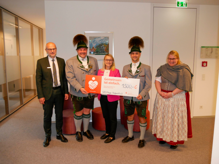 Anlässlich des 125.jährigen Gründungsjubiläum des GTEV Anger-Höglwörth fand in den Räumen der Sparkasse Berchtesgadener Land eine Spendenübergabe über 1.500 Euro statt die dankend eine Abordnung der Vorstandschaft aus den Händen von Helmut Grundner (stv. Vorsitzender Stiftungsrat) und Theresia Petram (stv. Vorsitzende Stiftungsvorstand) in Empfang nehmen durfte.