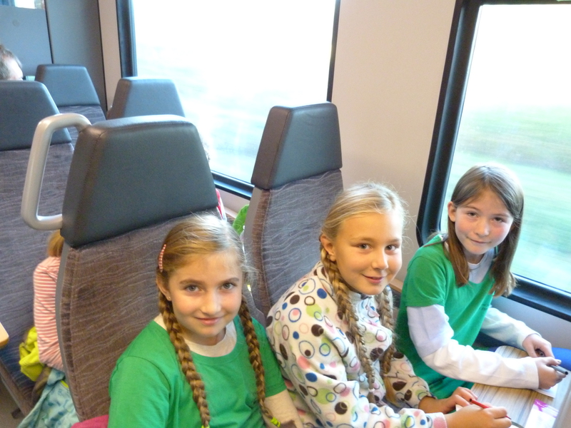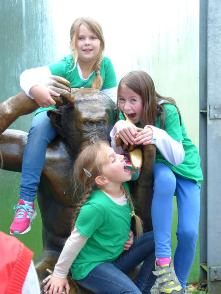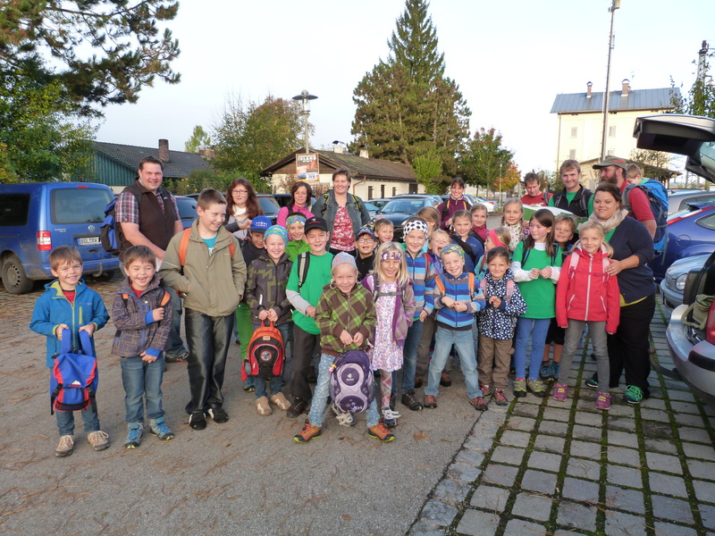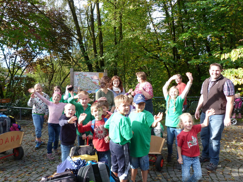25 Kindern und 9 Begleitpersonen von Teisendorf mit dem Zug auf den Weg gemacht zum Bahnhof München Ost und sind von dort mit dem Bus zum Tierpark gefahren.